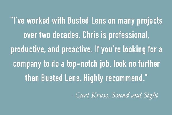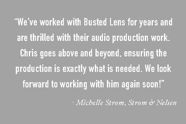 Busted Lens exists to create and share content that defines the human experience. We empower businesses and individuals to tell their stories in ways that inspire, motivate, and celebrate those human connections. Through audio, video and storytelling, we bring your message to life so that it means as much to your audience as it does to you.